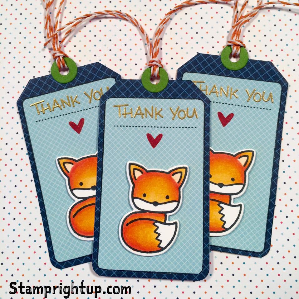 The tags were paper pieced with the new Beachside patterns 12×12 & 6×6 papers. The tangerine twine really brought out the oranges I used to color the fox with my spectrum noir markers as well.