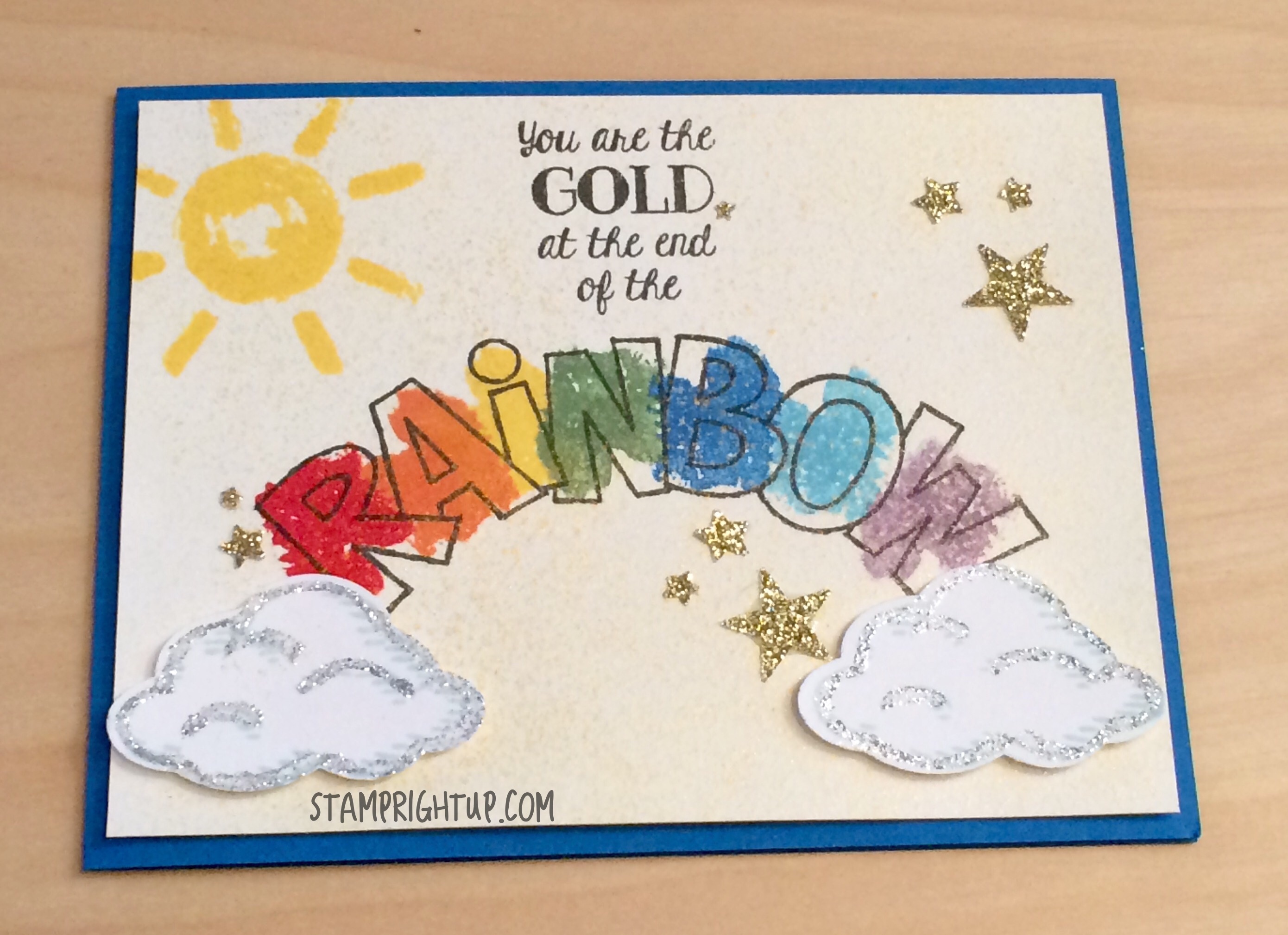 For this card, I used the Over The Rainbow stamp set with Sprinkles of Life for the clouds.