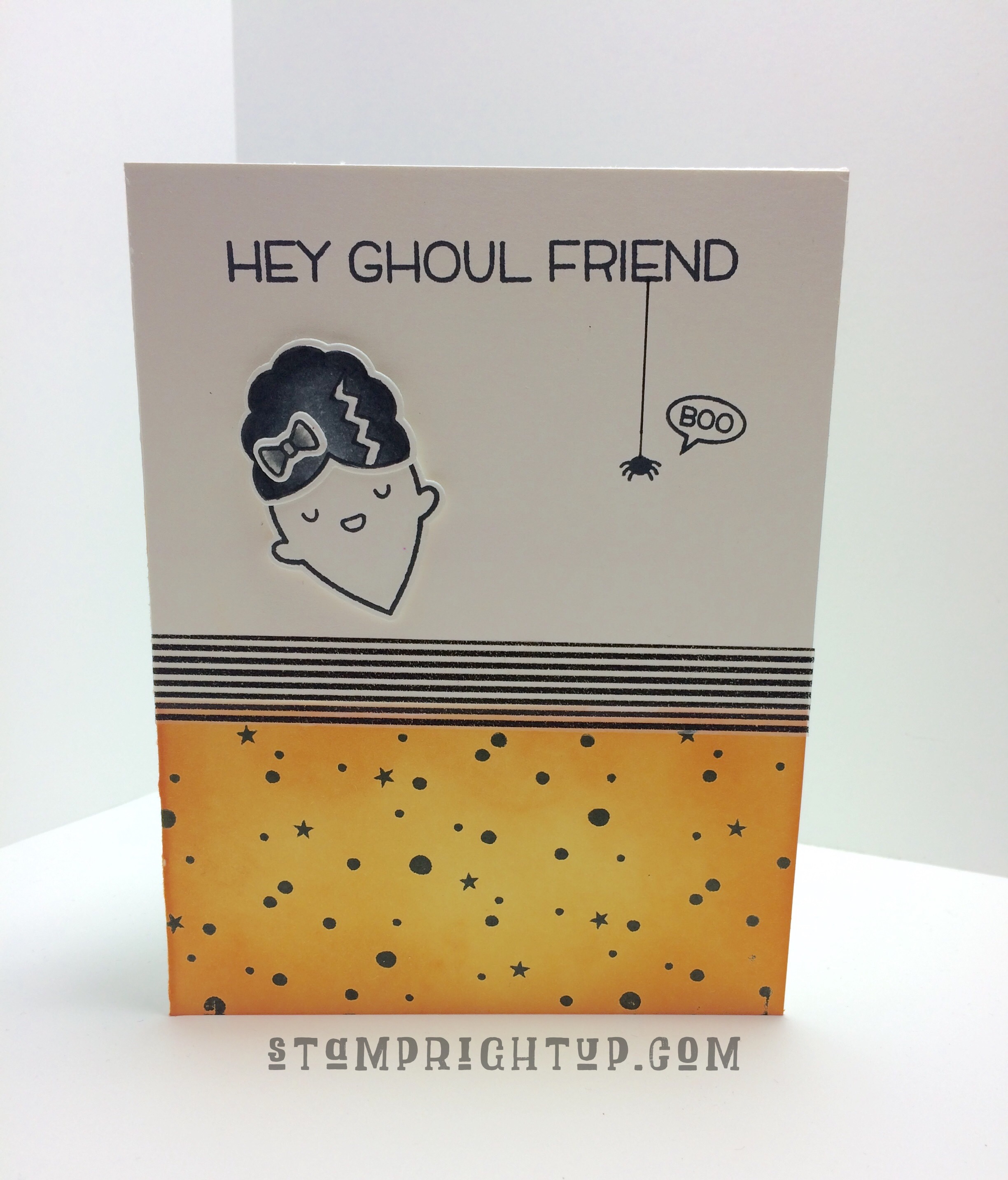 A little piece of washi tape across the seam of the blended bottom area and voila! A super cute Hey Ghoul Friend card! I sent two of these out to two of the best ladies on the planet (IMHO) and included a cute pair of ghost earrings that I found online and sent those off.