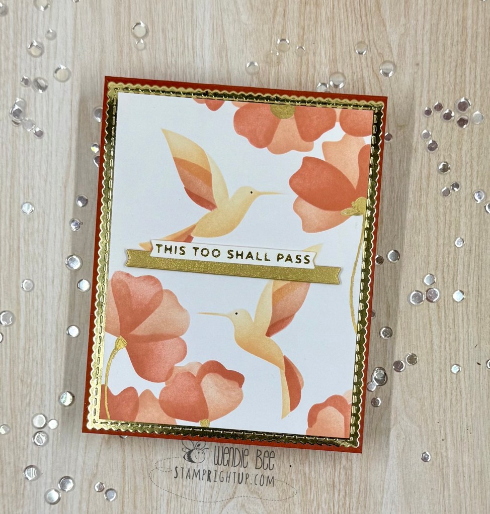 Foiling sentiments is wonderful, but it’s a lot of work for me to drag out my glimmer machine, so I happen to have a pouch of pre foiled & cut sentiments from PinkFresh so I just popped one on from that stash.