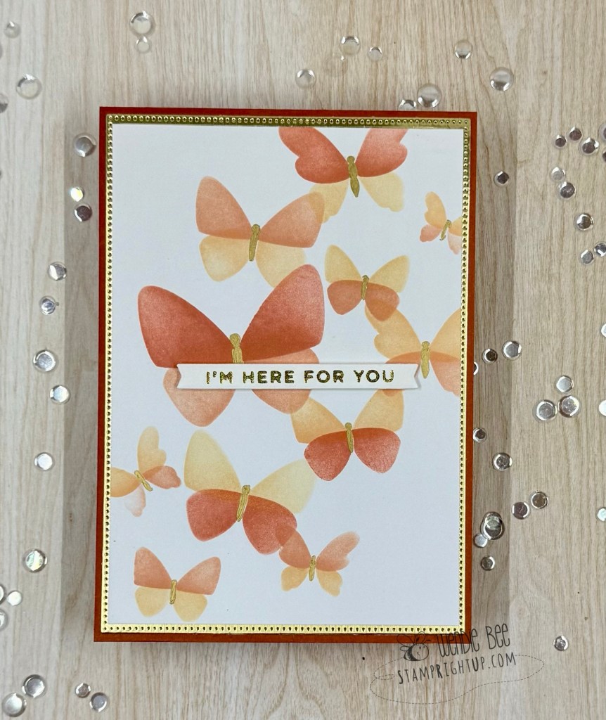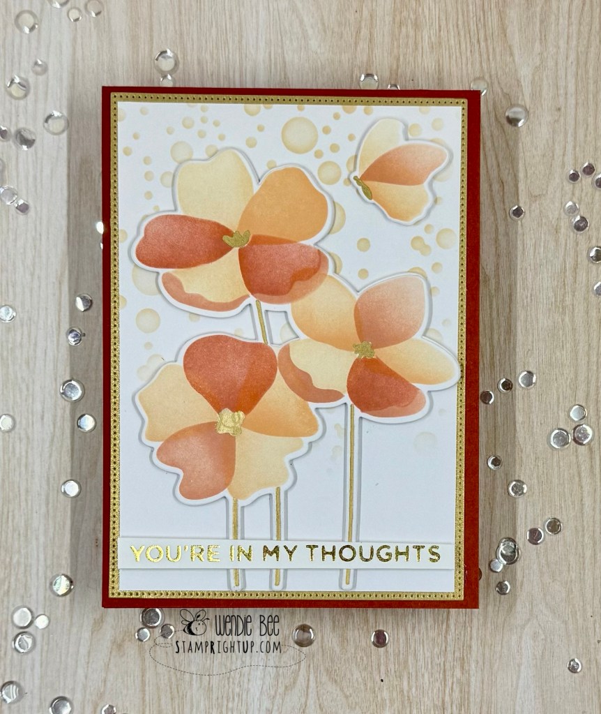 When I saw this set, while I knew it would be versatile for color ways, but I immediately saw tiger lillies, so I chose a peachy-orange palette to start. The card base is Spellbinders Barely Peach (I think it would be Bellini equivalent now with the refresh)