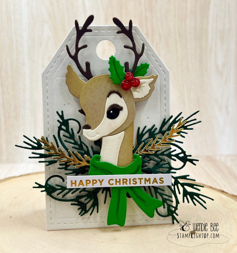I created a mini card base with the largest tag for from a Mama Elephant set that I had in my stash, and filled the background with foliage from Winter Greenery
